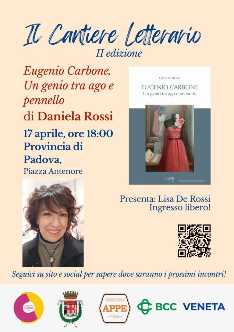 Venerdì 17 aprile alle ore 18.00, presso la Provincia di Padova (Piazza Antenore), sarà presentato il libro Eugenio Carbone. Un genio tra ago e pennello di Daniela Rossi.