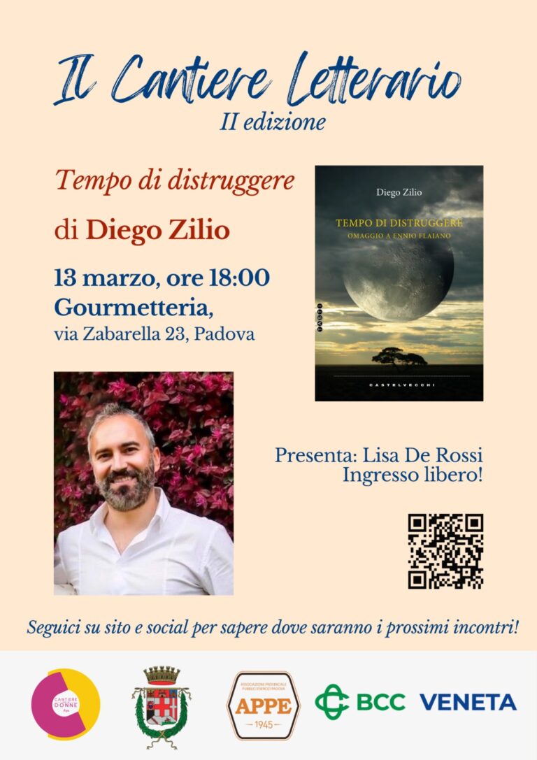 Venerdì 13 marzo alle ore 18.00, alla Gourmetteria di Padova (via Zabarella 23), la presentazione del romanzo Tempo di distruggere. Omaggio a Ennio Flaiano di Diego Zilio, edito da Castelvecchi