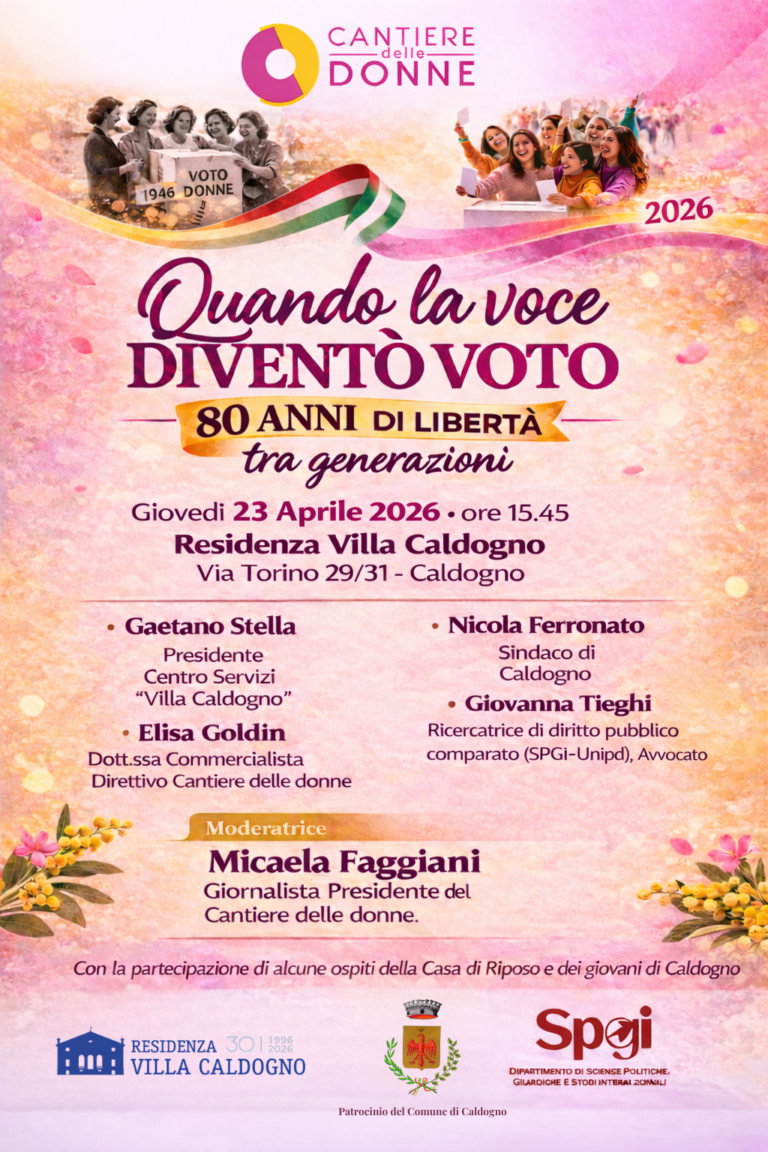 Con “Quando la voce diventò voto – 80 anni di libertà tra generazioni”, Il Cantiere delle Donne propone un incontro che mette al centro il dialogo tra età diverse, intrecciando esperienze, visioni e linguaggi.